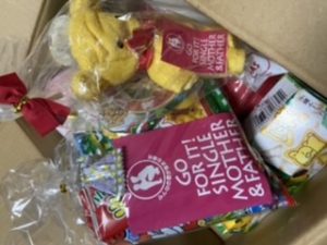 日用品やお菓子等沢山入っていて子供達と、笑顔になれました。
