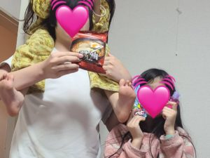 子供が久しぶりのお菓子にとても喜んでいます。