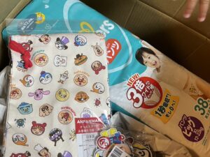 紙パンツとアンパンマンの巾着、ワッペンを送って頂きました