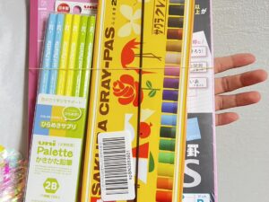 サクラクレパス20色、campusノート5冊セット、かきかた鉛筆12本