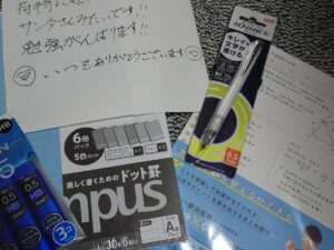 次は二学期にむけて、頂いた文具で勉強頑張ると言っていました(^^)