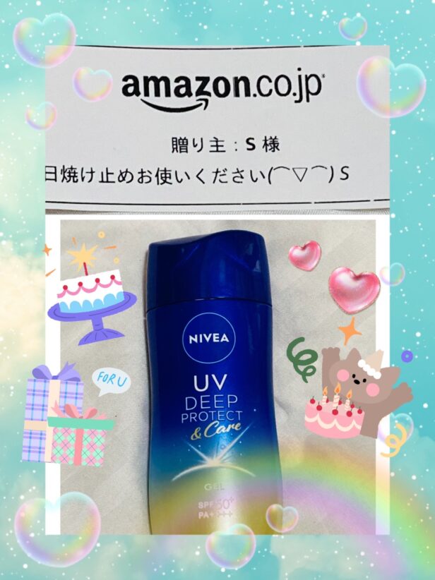 娘が前から欲しがっていた日焼け止めをS様が送って下さいました。