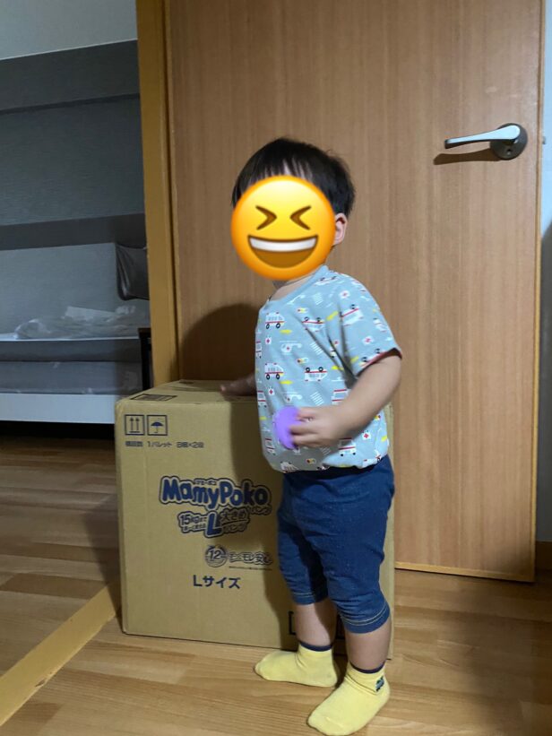 帰宅したら大きな箱があったので子どもも「おっきー!」と言って駆け寄っていました