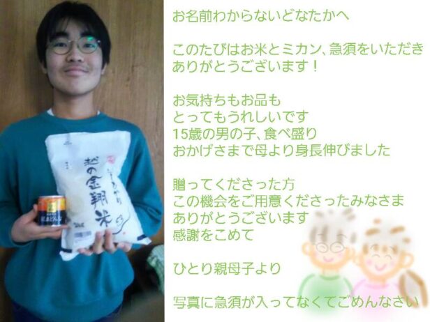 (急須は落とすといけないから、お米とミカンだけ持って…)