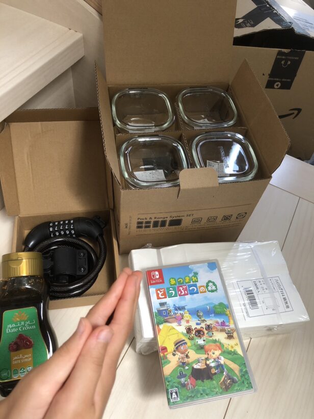 郵便の届く音で玄関を開けますと、Amazonの大きな段ボールが…. 宛名に間違いは無く、開梱をする私の後ろで走り出し「狂喜乱舞」する娘。私には箱の内容が把握しきれずにおりました段階で、熱望をしていました「あつまれどうぶつの森」カセットを目敏く見つけていたのです!