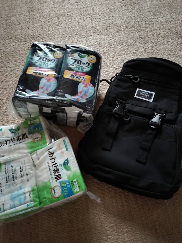 たくさんの生理用品の他にも娘が学校へ背負って行けるリュックも一緒に入っていました。