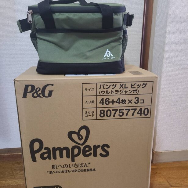 これからお出掛けの時にとても重宝するクーラーボックスと毎日使用する、オムツ届きました!