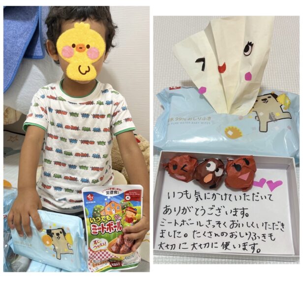 おしりふきは無くなりそうなタイミングで届き大変助かりましたし、久々に食べるミートボールに息子はとても喜んで食べていました。