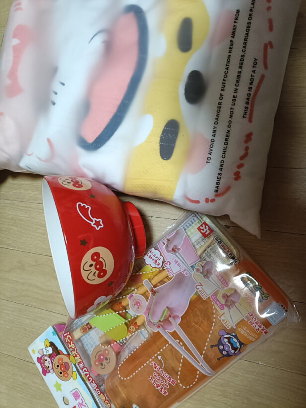パンツ、お茶碗、お箸、クッションをいただきました。
