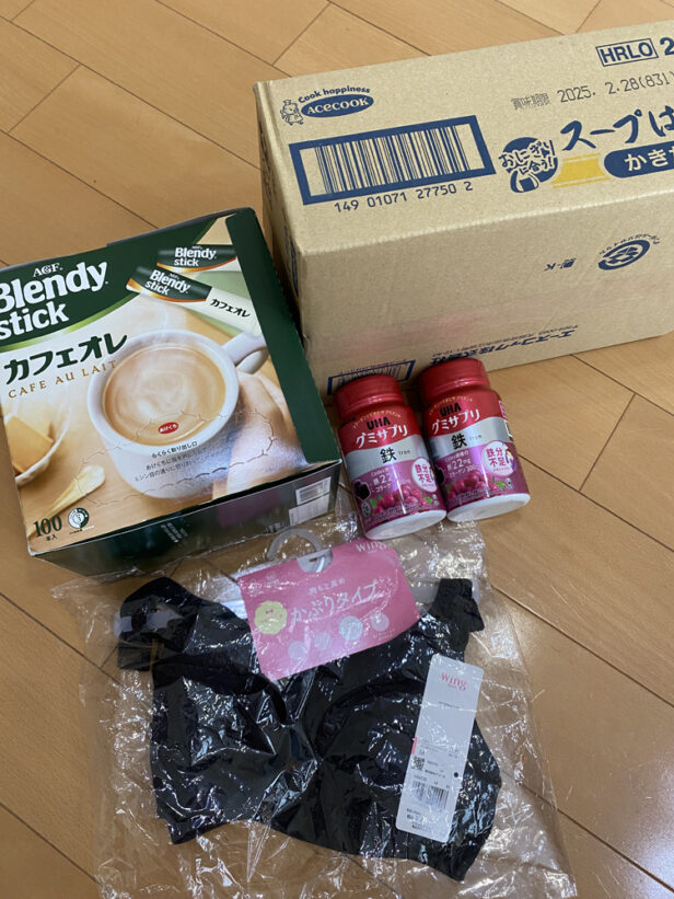 コーヒー、春雨ヌードル、鉄分グミ、下着を頂きました😭