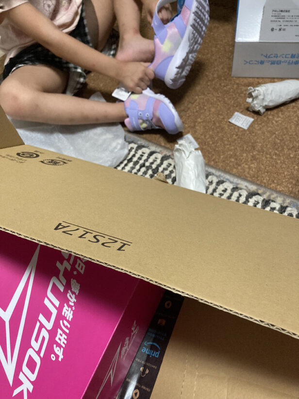 靴がサイズアウトしたり破れたりしてもなかなかすぐに買ってやれないので、Amazon支援に靴をリクエストしていました。