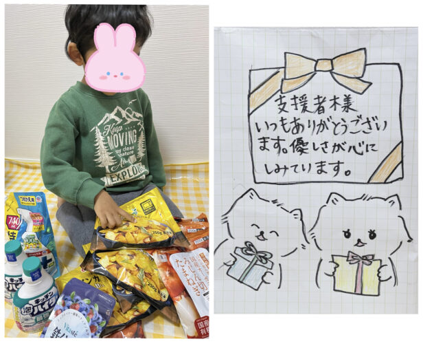 玉ねぎは前回も頂き美味しく毎日子供に食べさせています。私の鉄分サプリやたくさんの日用消耗品、ありがたく大切に使わせて頂きます。今年もあと1ヶ月ですがたくさんの贈り物を続けて支援頂き本当にありがとうございました。息子と2人で穏やかな年越しをできそうです。とっても感慨深くいい年になりました。