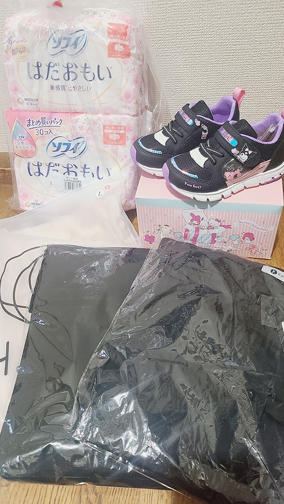 私の洋服三枚に、ナプキン、子供の靴までたくさんの贈り物ありがとうございますm(__)m