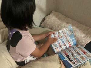 たくさんの本が入っていて、こどもは選ぶのを楽しそうに手に取っています。