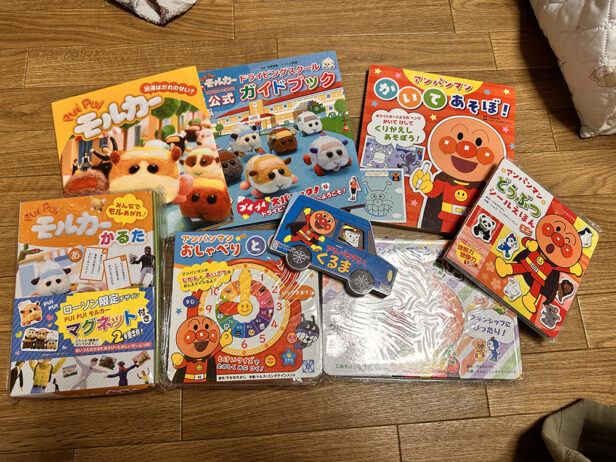 探してたアンパンマンのシール絵本やアンパンマンのうたのえほんなどわたしも子どもも大喜びで開けてすぐシール絵本で遊び音楽を鳴らし楽しそうでした。