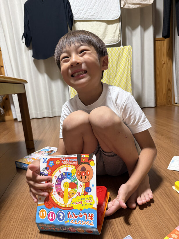 アンパンマンの童謡の曲や時計のおもちゃも終始気に入って遊んでました!