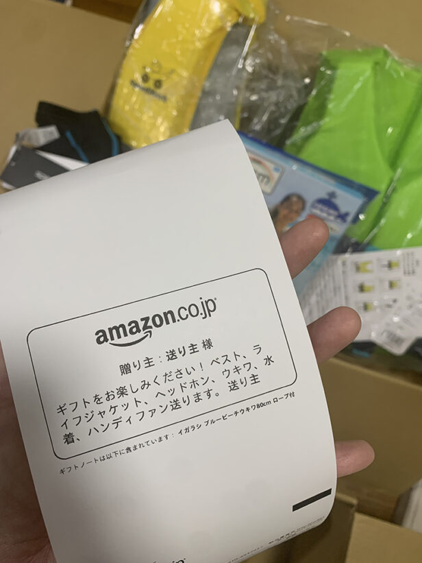 浮き輪、フローティングベスト、水着などを一式送っていただき、本当に感謝しかないです。