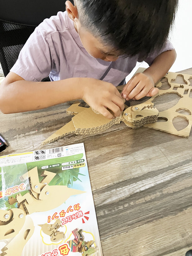 切り取ったダンボールの向きなど、考えながら一生懸命に作っている姿を見れて嬉しく思いました。